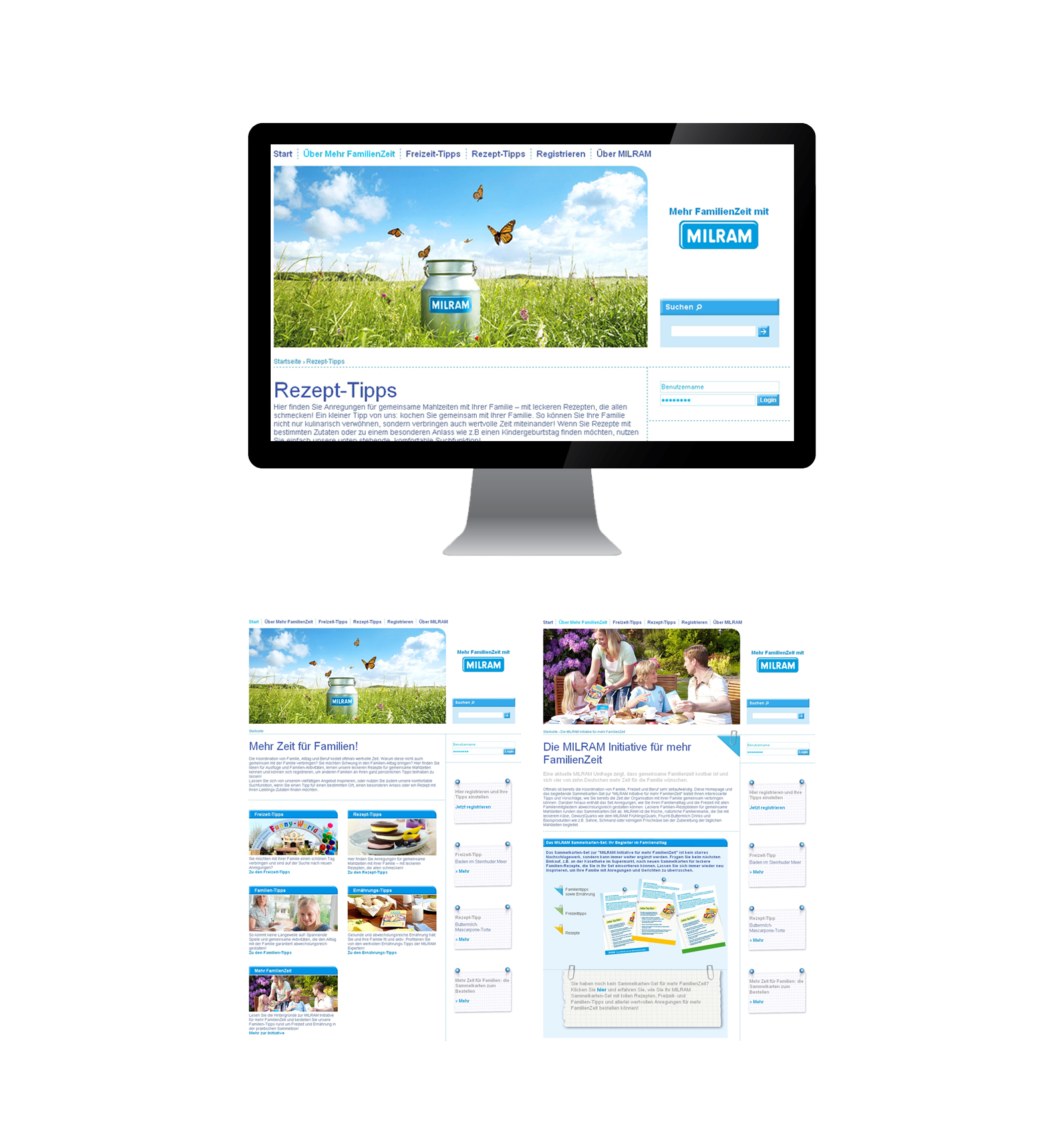 Kunde Projekt Agentur Milram Inhaltliche Konzeption, Navigationsoptimierung, Design-Internetauftritt, AntTrail, Hamburg Website www.familienzeit.de